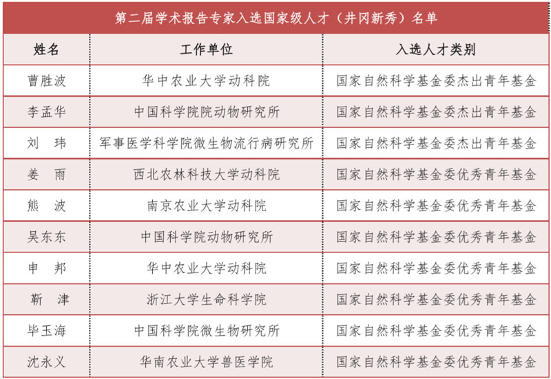 中國畜牧獸醫(yī)學(xué)會(huì)副理事長、秘書長楊漢春教授宣讀了第二屆井岡新秀名單