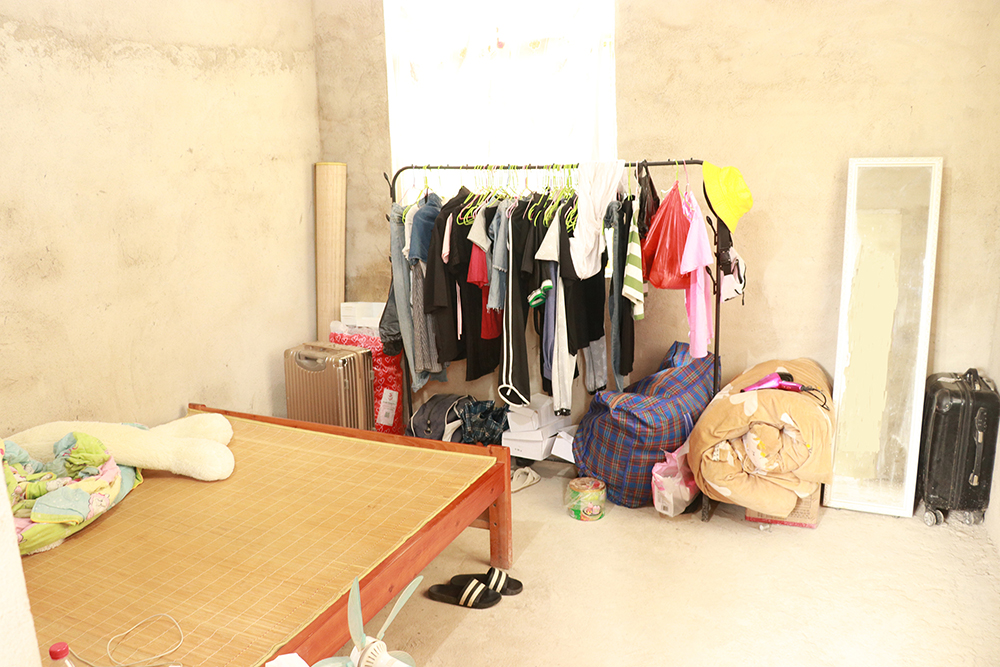 小小的房子里,剛進(jìn)到前廳,抬頭就能看到墻上掛著的貧困證明等文件。周圍沒有擺設(shè)任何的家具,凳子還是梁同學(xué)急急忙忙從房間里搬出來的。后面則是姐弟兩人的房間。梁美麗房間的東西略微比弟弟多一些。但說是多一些,其實(shí)也只有一張床,一面鏡子,兩個旅行箱,和一些掛在架子上的衣服而已。