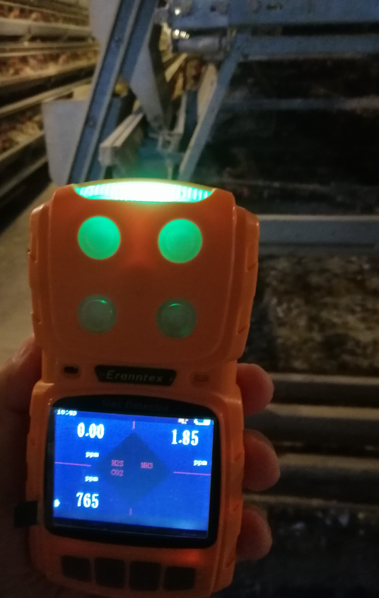 蛋雞舍通風(fēng)量不僅影響舍內(nèi)溫度的穩(wěn)定性和空氣質(zhì)量,更影響蛋雞的健康和生產(chǎn)性能。國(guó)內(nèi)傳統(tǒng)蛋雞舍主要是刮板式清糞系統(tǒng),其清糞周期較長(zhǎng),且存在飲水器漏水、清糞不徹底等問(wèn)題,容易造成雞糞發(fā)酵,導(dǎo)致舍內(nèi)濕度、二氧化碳和氨氣濃度較高。為保證雞舍內(nèi)有害氣體不影響蛋雞的健康和生產(chǎn)性能,蛋雞舍內(nèi)二氧化碳濃度上限為 1500 mg/m3 ,蛋雞舍內(nèi)氨氣質(zhì)量濃度基本不會(huì)超過(guò) 15 ppm。見(jiàn)圖1、2。