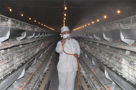 由于冬春交替時(shí)節(jié)天氣仍舊寒冷,畜禽圈舍常常處于封閉狀態(tài),空氣流通性比較差,加之圈舍內(nèi)部陰暗、潮濕、寒冷,因此極易引發(fā)呼吸道傳染病,所以,防止疫病發(fā)生至關(guān)重要。要定期對(duì)畜舍進(jìn)行消毒,保證飼養(yǎng)環(huán)境的清潔衛(wèi)生。推薦每周用過氧乙酸、播恩酸化劑、百毒殺、或者戊二醛對(duì)圈舍消毒一次,消毒劑應(yīng)該交替使用,避免病原菌和病毒對(duì)消毒劑產(chǎn)生耐藥性。每次清理料槽后,使用聚維酮碘對(duì)料槽進(jìn)行消毒。此外為了避免因?yàn)槿说脑驅(qū)е录倚笊?,工作人員每次進(jìn)出畜舍之前,都要到消毒間進(jìn)行消毒,消毒間內(nèi)設(shè)超聲波霧化消毒系統(tǒng),消毒間外以及圈舍外部地面鋪設(shè)生石灰。要經(jīng)常觀察家畜的精神狀態(tài)、食欲、糞便等情況,及時(shí)發(fā)現(xiàn)疫情,及時(shí)治病。
