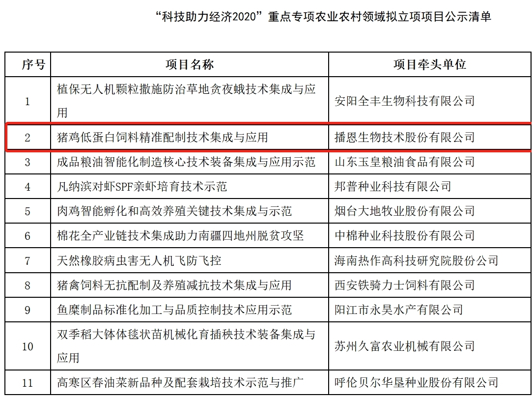 播恩集團牽頭承擔(dān)的農(nóng)業(yè)農(nóng)村部“科技助力經(jīng)濟2020”重點專項研發(fā)項目順利通過驗收