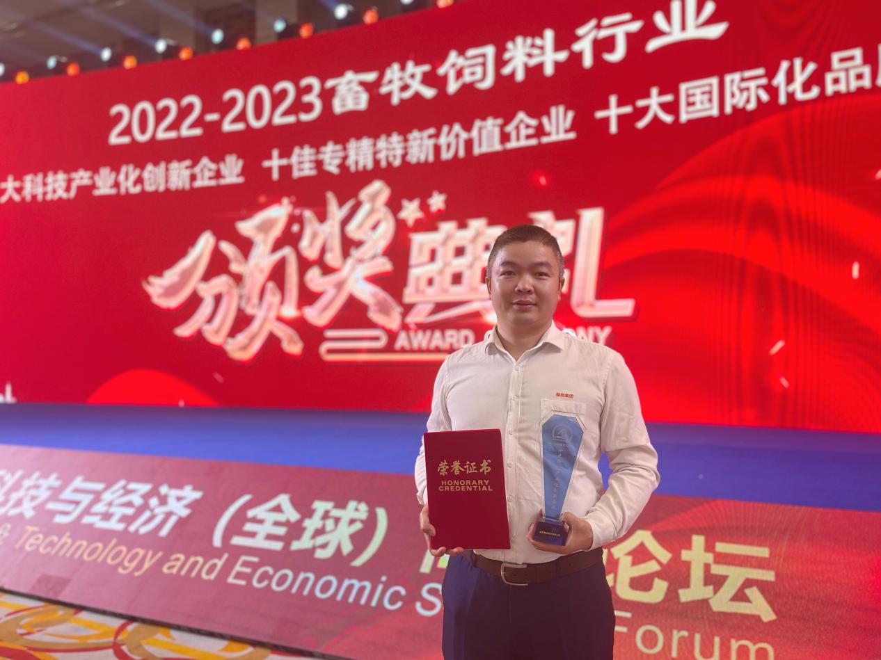 2023年4月19日,第十九屆畜牧飼料科技與經濟(全球)高層論壇頒獎盛典在河南如期舉行,播恩集團憑借優(yōu)秀的科技創(chuàng)新能力和成果轉化能力,榮獲“十大科技產業(yè)化創(chuàng)新企業(yè)”獎。