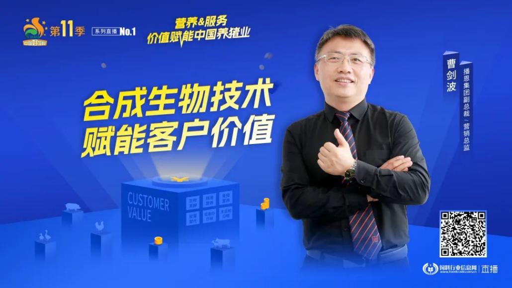 2023年7月,由中國飼料行業(yè)信息網(wǎng)主辦、國家飼料工程技術(shù)研究中心和中國畜牧獸醫(yī)學(xué)會養(yǎng)豬學(xué)分會聯(lián)合主辦的《“中國好飼料·第11季”系列直播No.1--營養(yǎng)&服務(wù) 價值賦能中國養(yǎng)豬業(yè)》以線上直播方式開啟,本次直播活動主要圍繞“飼料營養(yǎng)技術(shù)創(chuàng)新與技術(shù)服務(wù)升級”等主題展開,并且進(jìn)行了深入交流探討和案例分析。播恩集團(tuán)副總裁/營銷中心總監(jiān)曹劍波受邀參加了本次直播活動,并作了主題為《合成生物技術(shù)賦能客戶價值》的報告分享。