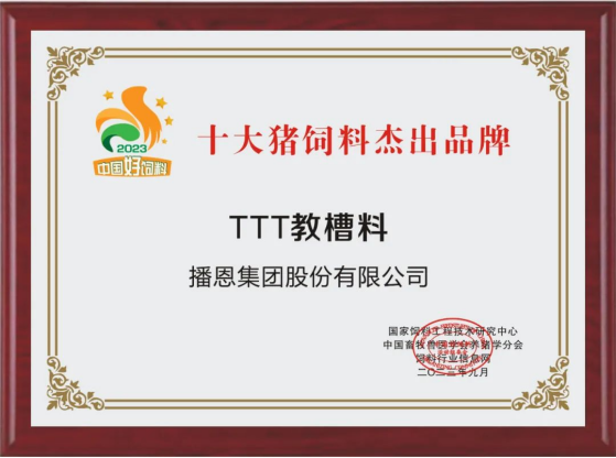 近日,在最新一季的“中國好豬料·第11季”評(píng)選活動(dòng)中,播恩集團(tuán)的拳頭產(chǎn)品——TTT教槽料成功獲得了“十大豬飼料杰出品牌”的榮譽(yù)稱號(hào)。這一榮譽(yù)不僅是對(duì)播恩集團(tuán)在豬飼料領(lǐng)域卓越表現(xiàn)的認(rèn)可,更是對(duì)播恩TTT教槽料品質(zhì)與技術(shù)的高度贊賞。