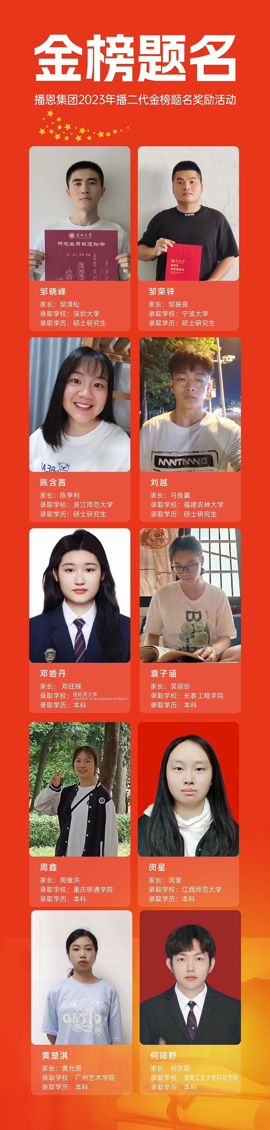 2023年集團(tuán)職工子女有10人考入高校,其中碩士4人,本科6人。為鼓勵(lì)更多的“播二代們”成為有理想、有行動(dòng)、有擔(dān)當(dāng)?shù)那嗄?,同時(shí)也給職工帶來滿滿的歸屬感與榮耀感,集團(tuán)除了現(xiàn)金獎(jiǎng)勵(lì)外,還送上了董事長(zhǎng)鄒新華先生的祝賀函、自著的《百煉成王—王陽明》一書、精美禮品等。我們也對(duì)其中一些具有代表性的家長(zhǎng)進(jìn)行了采訪,下面是他們的一些采訪紀(jì)實(shí)。