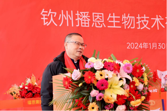欽北區(qū)副區(qū)長黃如龍,廣西飼料工業(yè)協(xié)會(huì)會(huì)長、廣西大學(xué)教授沈水寶博士,播恩集團(tuán)廣西特區(qū)總經(jīng)理曾紹鵬,欽州工廠總經(jīng)理?xiàng)畲?,分別做了致辭。