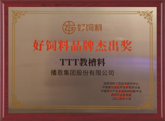 此次TTT教槽料榮獲《好飼料品牌·杰出獎》,實至名歸。這一榮譽既是對其過去優(yōu)秀表現(xiàn)的高度認可,更是對未來發(fā)展的美好期許。展望未來,讓我們攜手播恩TTT教槽料,共同書寫?zhàn)B殖事業(yè)的新篇章。