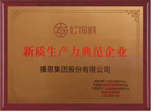 此次獲評“新質(zhì)生產(chǎn)力典范企業(yè)”稱號,不僅是對播恩過去努力的肯定,更是對其未來發(fā)展的鼓舞。播恩集團(tuán)將繼續(xù)秉持“為客戶創(chuàng)造價值”的理念,通過持續(xù)創(chuàng)新和深耕細(xì)作,推動新質(zhì)生產(chǎn)力的發(fā)展,為中國飼料行業(yè)的高質(zhì)量發(fā)展做出更大貢獻(xiàn)。