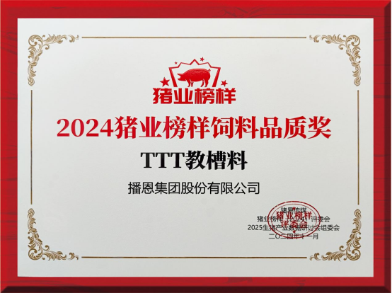2024年11月29日,備受矚目的生豬產(chǎn)業(yè)數(shù)據(jù)研討會在鄭州隆重舉行。本屆大會以“養(yǎng)好”為基,“管好”為徑,“好數(shù)據(jù)”為果,吸引了眾多行業(yè)專家、學(xué)者及企業(yè)代表參與。在這場“饕餮數(shù)據(jù)”盛宴中,播恩集團的明星產(chǎn)品TTT教槽料憑借其卓越的品質(zhì)和創(chuàng)新性,榮獲“2024豬業(yè)榜樣飼料品質(zhì)獎”,再次彰顯了其在幼小動物營養(yǎng)領(lǐng)域中的領(lǐng)先地位。
