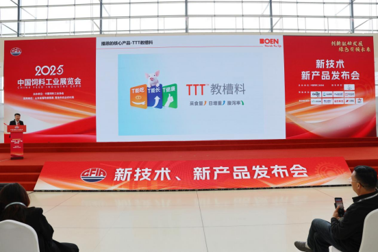 曾慶昌總監(jiān)于2025大會新技術(shù)、新產(chǎn)品發(fā)布會上對外發(fā)布TTT2.0教槽料及母仔一體化營養(yǎng)