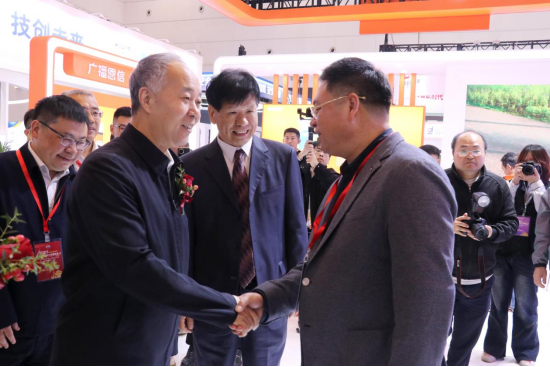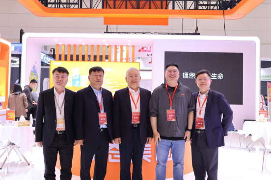 農(nóng)業(yè)農(nóng)村部畜牧獸醫(yī)局飼料飼草處黃慶生處長(圖左二)一行蒞臨播恩展位參觀指導(dǎo)
