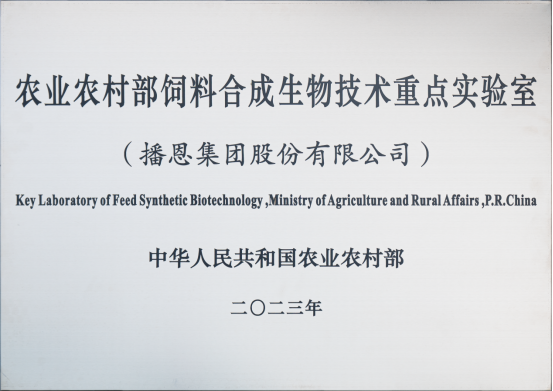 播恩集團(tuán)于2023年獲授農(nóng)業(yè)農(nóng)村部飼料合成生物技術(shù)重點(diǎn)實(shí)驗(yàn)室