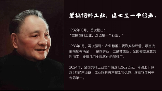 1982年10月,“要搞飼料工業(yè),這也是一個(gè)行業(yè)”被提出,如今,中國(guó)飼料工業(yè)已成為全球標(biāo)桿。2024年,全國(guó)飼料工業(yè)總產(chǎn)值達(dá)1.26萬億元,帶動(dòng)上下游超5萬億產(chǎn)業(yè)鏈,工業(yè)飼料總產(chǎn)量3.15億噸,連續(xù)13年居世界第一,73萬從業(yè)者正以精銳之師支撐起全球最大飼料產(chǎn)業(yè),實(shí)現(xiàn)從“量”的積累到“質(zhì)”的跨越。這數(shù)據(jù)的背后,是“中國(guó)力量”。
