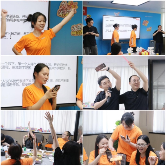 致辭結(jié)束后,生日會進(jìn)入互動環(huán)節(jié),現(xiàn)場也瞬間化作歡樂的海洋。美食香氣四溢間,各類趣味游戲輪番登場,徹底打破了平日里的工作嚴(yán)肅氛圍。在“表情包猜成語”環(huán)節(jié),技術(shù)人員一改往日專注敲代碼的沉穩(wěn)模樣,為了搶答成功,快速高舉手臂,甚至踮起腳尖,躍躍欲試的模樣引得全場笑聲不斷。最令人驚喜的當(dāng)屬法務(wù)和審計(jì)部門的“跨界表演”。這些平日里嚴(yán)謹(jǐn)認(rèn)真、專注于合同條款與數(shù)據(jù)表格的同事們,被青春洋溢的播恩學(xué)妹熱情邀請,臨時(shí)上陣挑戰(zhàn)《愛你》舞蹈。沒有排練、毫無經(jīng)驗(yàn)的他們,動作有的快半拍、有的慢半拍,甚至手腳“各自為政”,但卻絲毫不怯場,努力跟上節(jié)奏的認(rèn)真模樣,搭配著略顯笨拙的舞步,讓現(xiàn)場充滿歡樂的氣氛,歡呼聲與掌聲此起彼伏……一個個游戲,一個個互動,笑聲與音樂聲交織,繪就出一幅溫暖而熱烈的團(tuán)隊(duì)情誼畫卷。