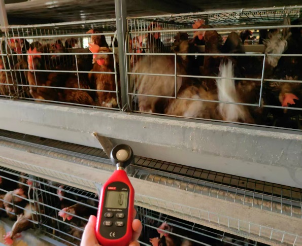 3.3.2光照強度:維持在 1015勒克斯(籠養(yǎng)層面),定期擦拭燈泡,防止灰塵覆蓋影響光照效果。見圖1